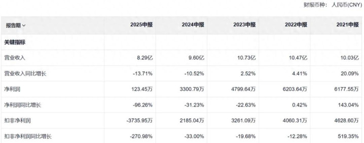 上周,元祖股份公布了2025年中期报告,上半年共实现营业收入8.29亿,同比下降13.71%;净利润123.45万,同比下降96.26%;扣非净利润-3735.95万,同比下降270.98%。